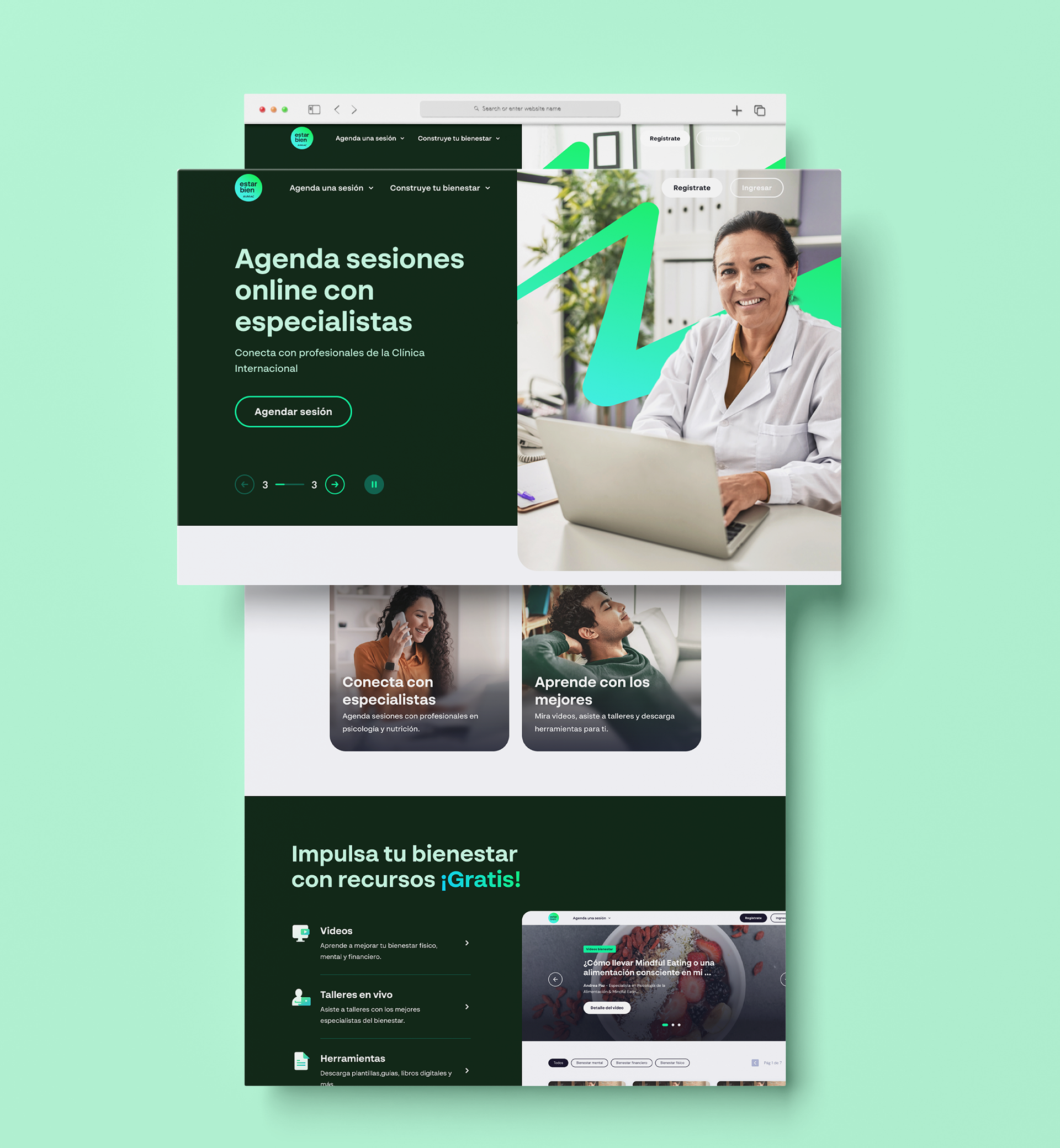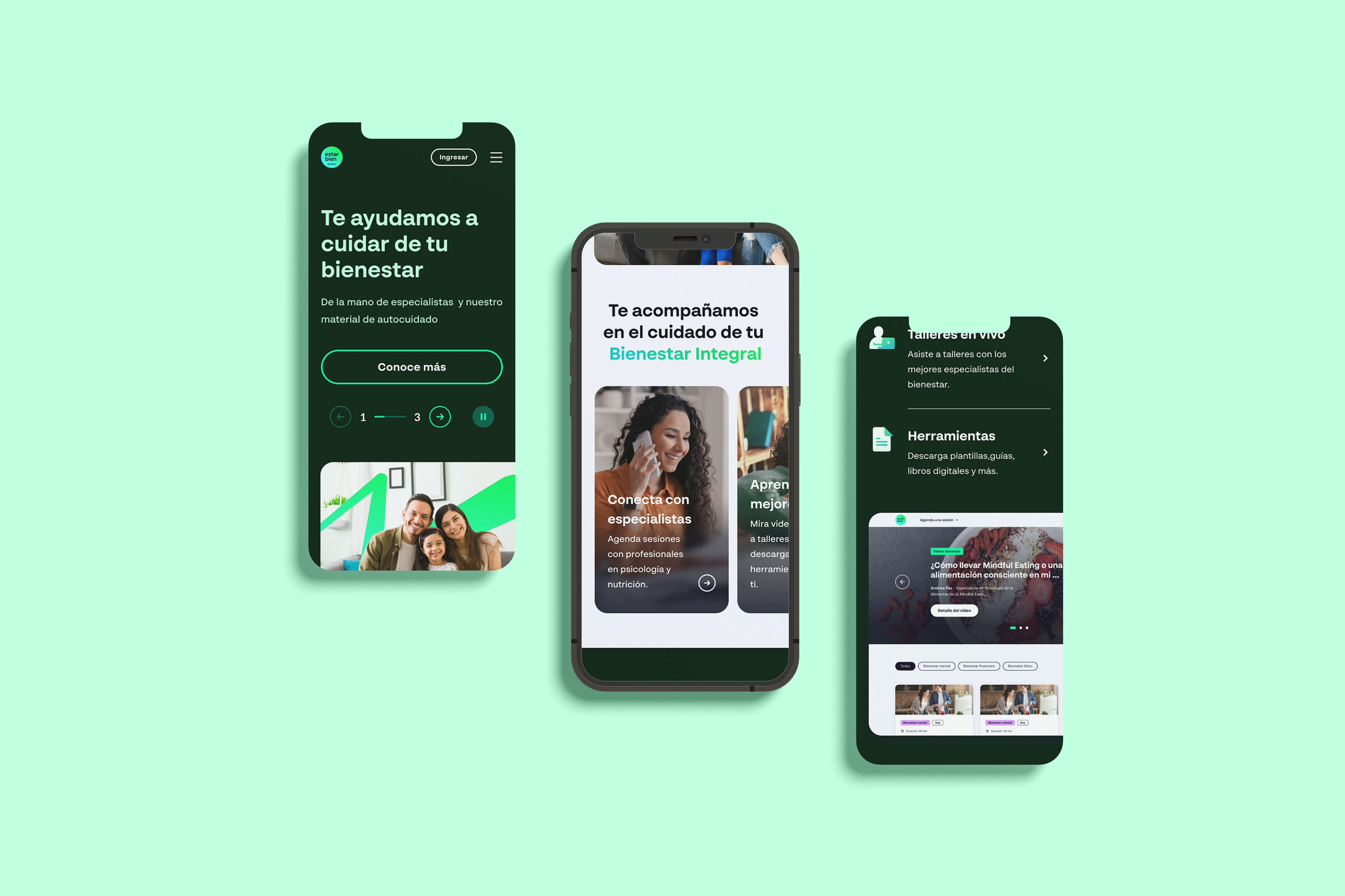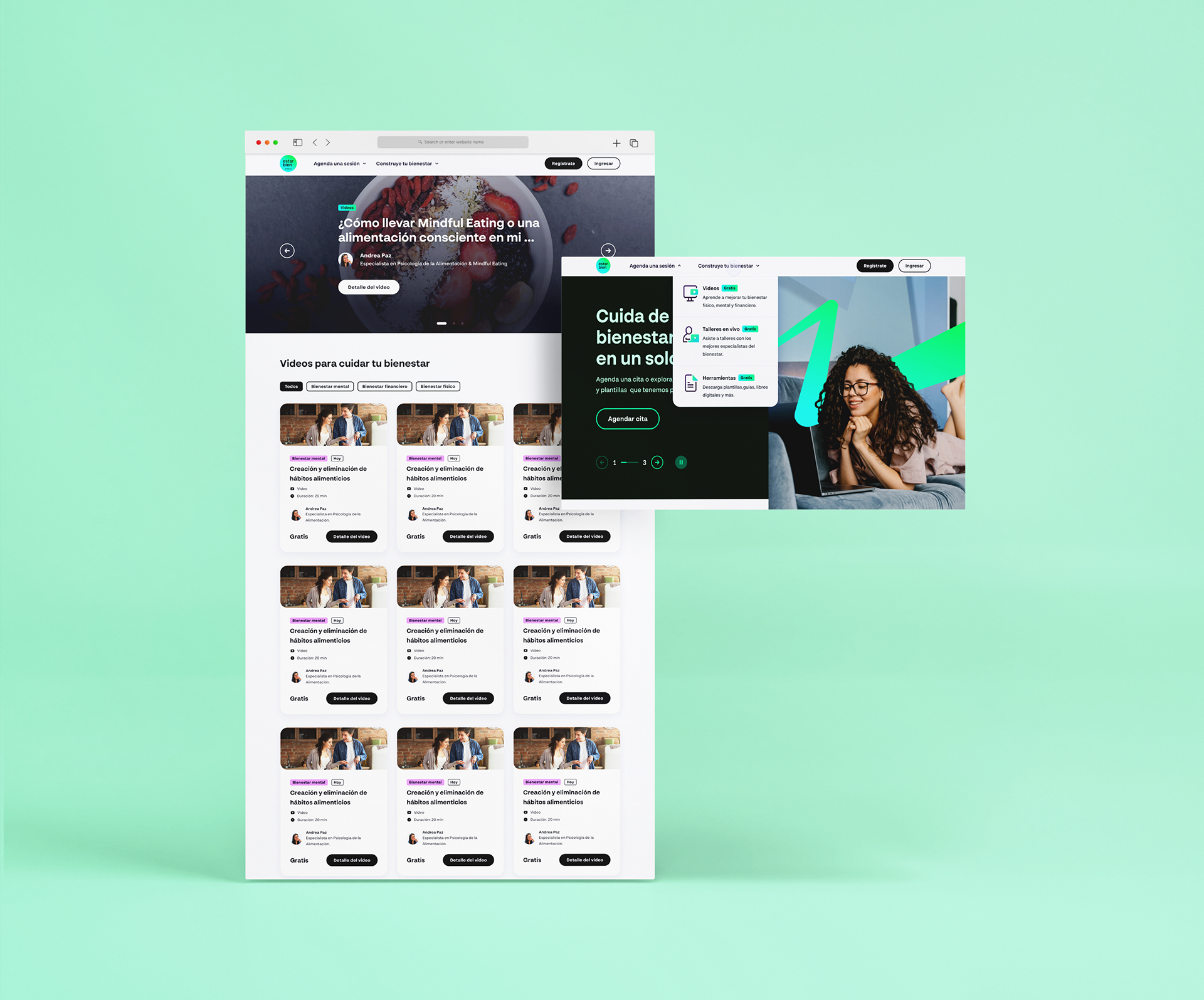 Estar Bien is a wellness platform developed by Rimac, one of Peru's largest insurance companies. The platform aims to promote healthier and happier lifestyles for its users by offering specialized courses. It was created in collaboration with Rimac's expert design team.